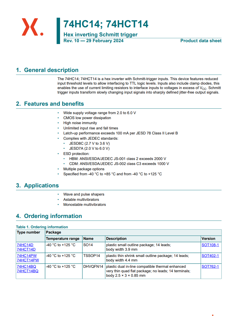 HEF4093BT,653 SOIC-14- Four-channel 2-input NAND Gate Schmitt Trigger – Original genuine product