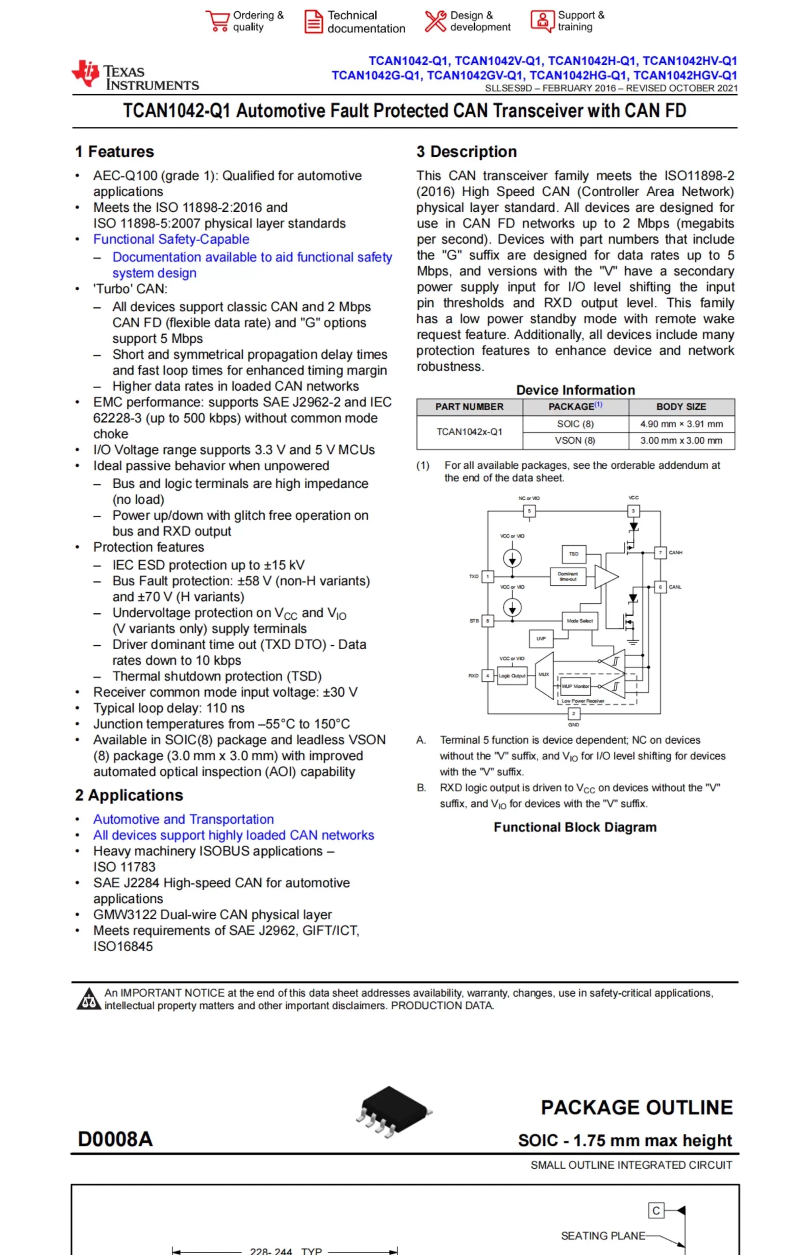 Original and genuine TI product – TCAN1042DRQ1 – SOIC-8, automotive fault protection CAN transceiver chip