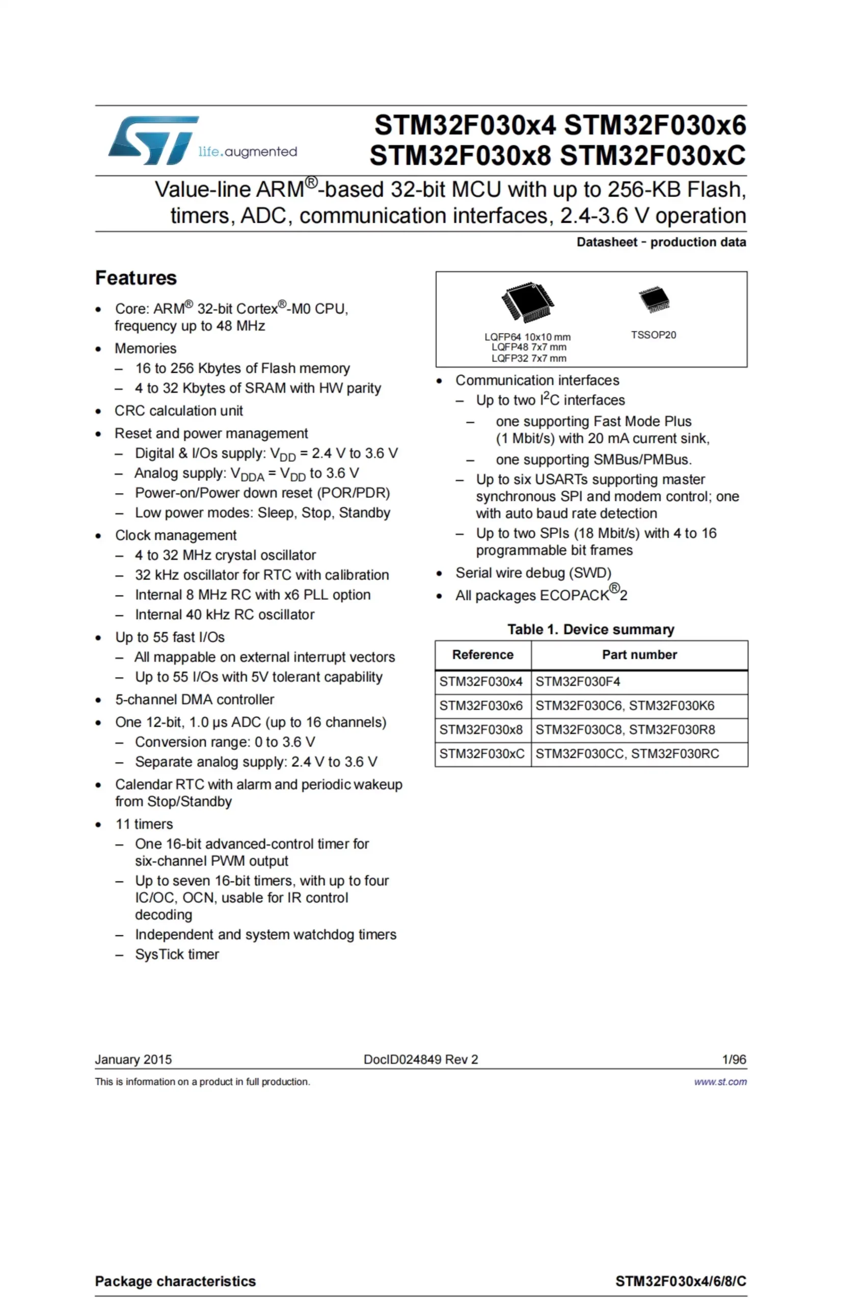Authentic product – STM32F030C8T6 – LQFP-48, ARM, Cortex-M0 – 32 bit microcontroller MCU chip